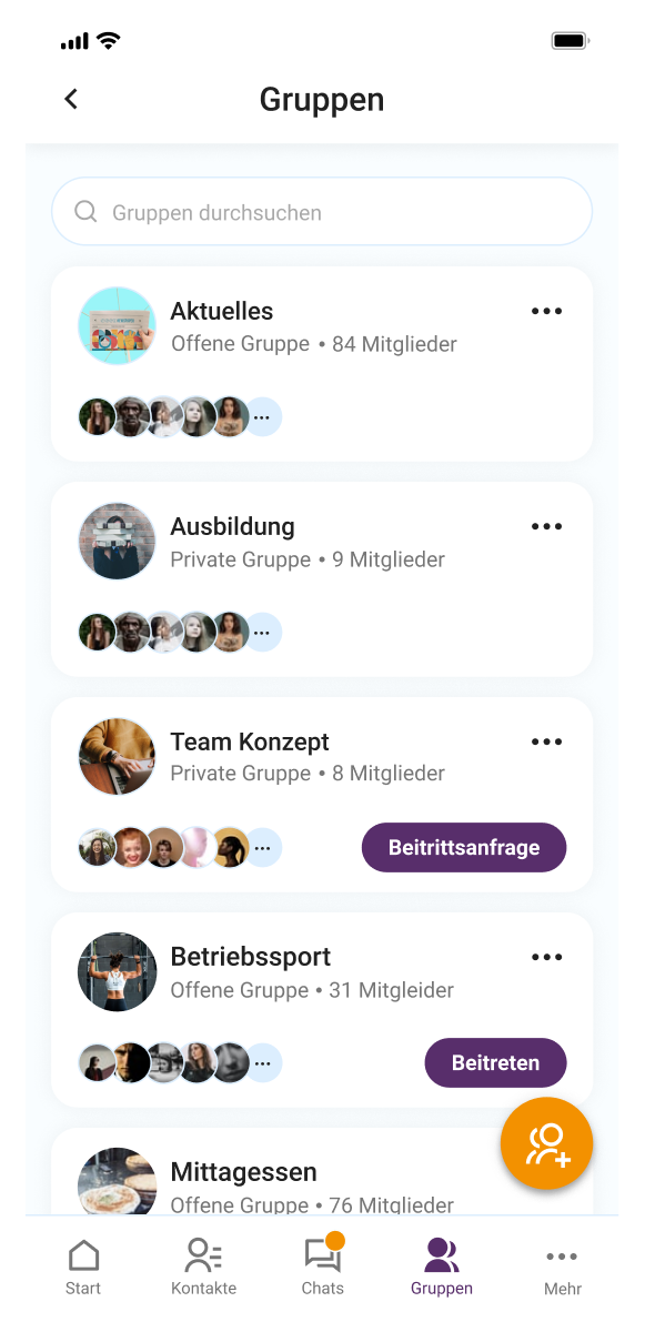 Standortleiter, Ausbilder oder jede andere Form von Team können sich offen oder geschlossen in Gruppen organisieren. So kommen Informationen genau bei den Menschen an, die Sie brauchen. Alle anderen werden nicht gestört.