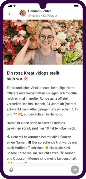 Der integrierte Messenger in moin! macht es möglich: Sendet eure Nachrichten an einzelne oder mehrere Personen und tauscht euch schnell aus. So könnt ihr in Sekunden eine Gruppe erstellen, um kurzfristig einen Dienst zu tauschen oder Ideen zu sammeln. Bilder, Videos, Anhänge, Sprachnachrichten.